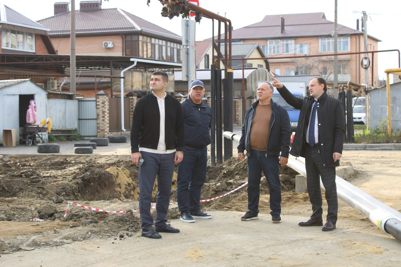 Глава МО «Яблоновское городское поселение» Заурдин Атажахов вместе со своим заместителем по вопросам благоустройства и ЖКХ Русланом Концевым и руководителем отдела благоустройства, ЖКХ и санитарного контроля местной администрации Муратом Халаштэ проинспектировал ход работ на объектах «Инфраструктура для жизни», проводящихся на территории поселения.