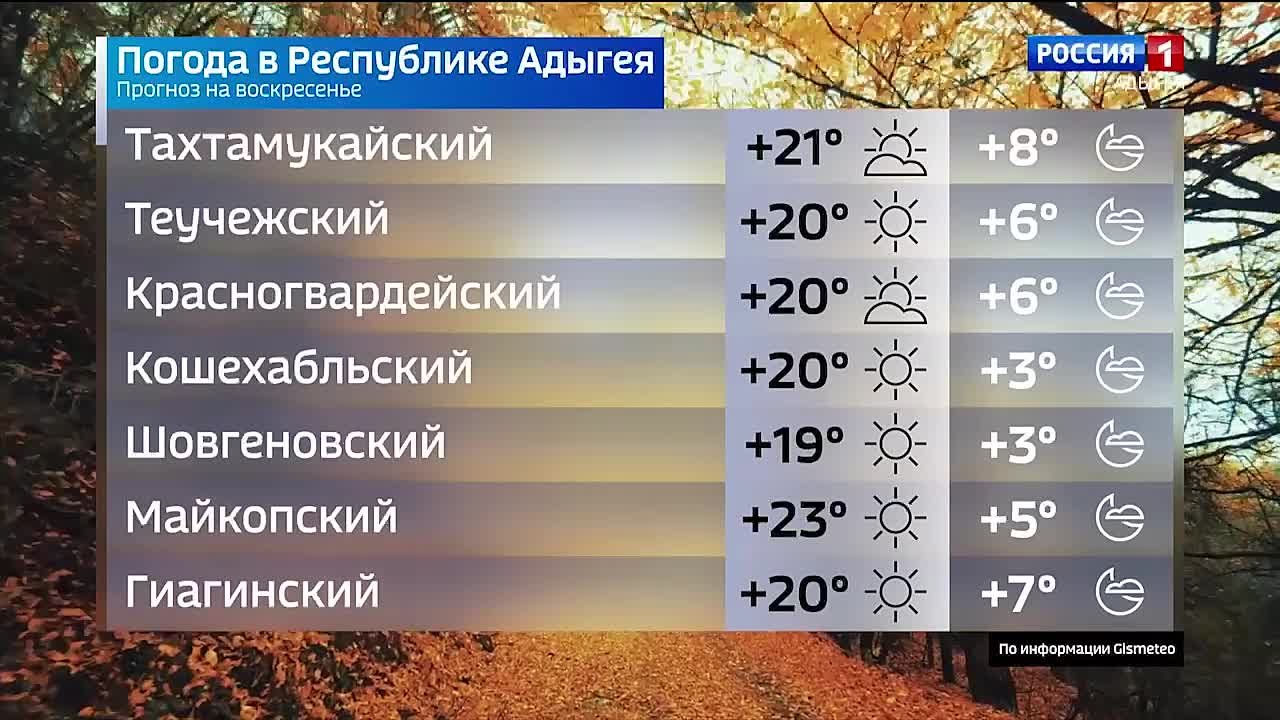 Доброе утро, Адыгея!Сегодня в республике преимущественно солнечная погода. Днем +22Ночью +8В горахночью до +3днем до +20Ветер 2-4 м/сВлажность воздуха 63%Восход солнца 07:27Закат в 16:44ПодписатьсяМы на RUTUBE