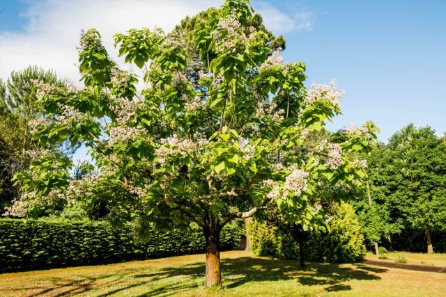 - Визуальная привлекательность: С яркими цветами и необычными стручками, которые остаются на дереве зимой, катальпа придаёт ландшафту уникальный вид.