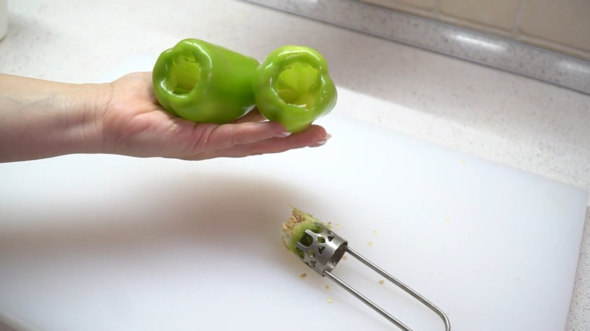 - Приспособление для удаления сердцевины сладкого перца: Этот уникальный инструмент, с металлическими выступами, легко удаляет сердцевину перца. Поворачивая его, можно выйти на лёгкую извлечение, при этом мякоть остаётся целой, что делает процесс начинки фаршем максимально удобным.
