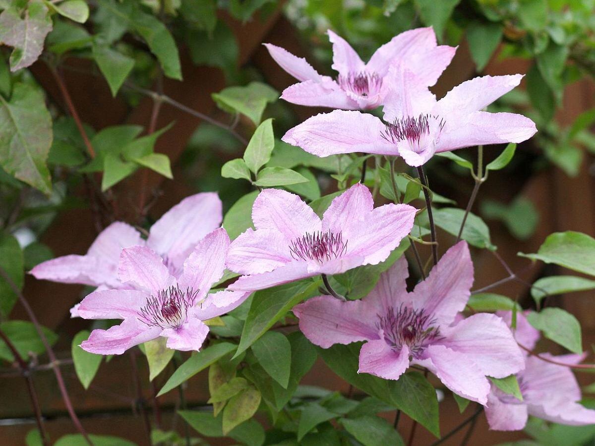 - Clematis viticella — предпочитает тёплую погоду, радуя фиолетовыми, красными и синими цветами, средних размеров.