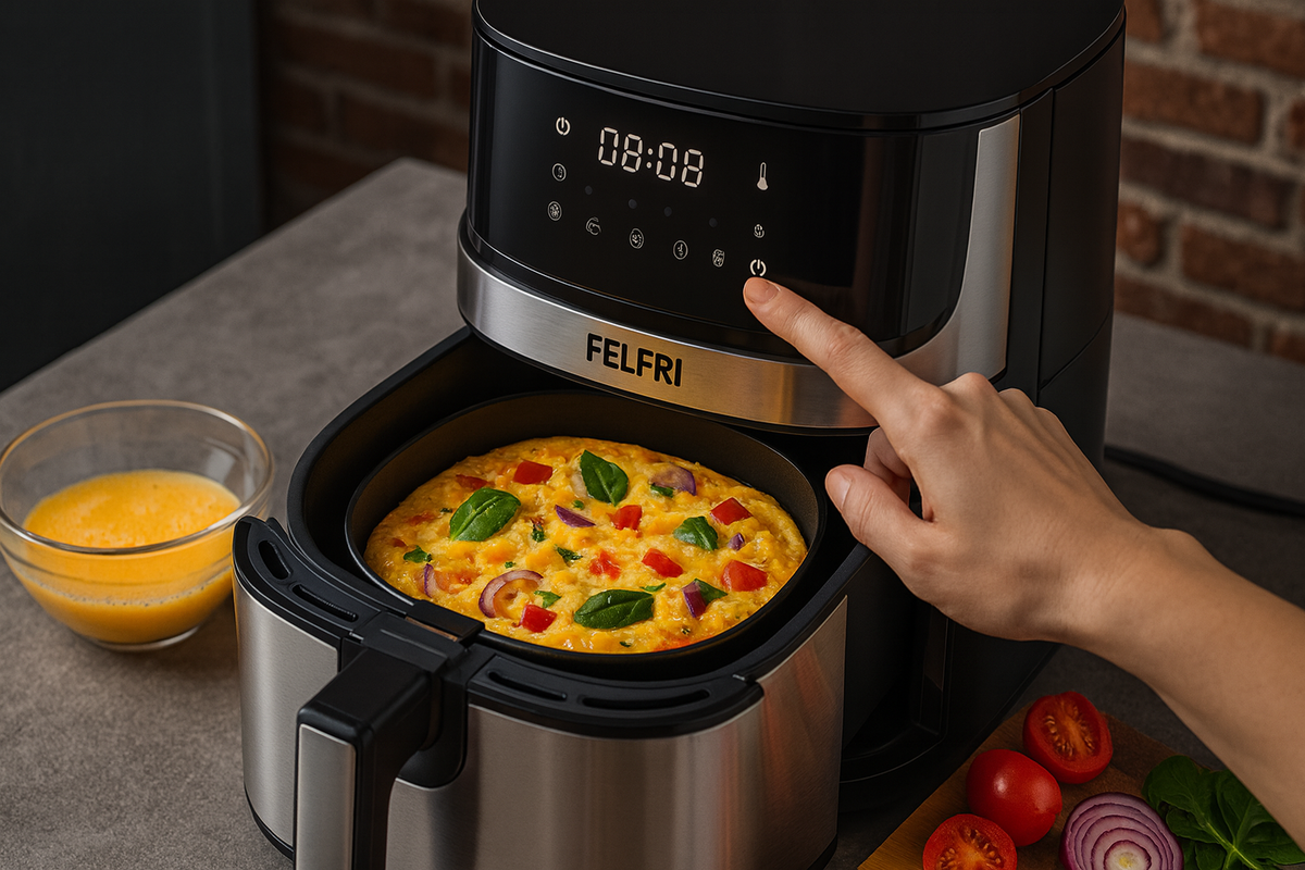 Готовка завтрака больше не вызывает стресс! Вы можете наслаждаться горячим, сытным омлетом, не проводя время у плиты. Рецепт, который мы предлагаем, идеально подходит для аэрогриля и дает возможность экспериментировать с начинками — от сыра до овощей. Всего 10-12 минут на приготовление позволят вам получать пышный и вкусный омлет каждый раз, сообщает Дзен-канал "FELFRI - бытовая техника для вашего дома".