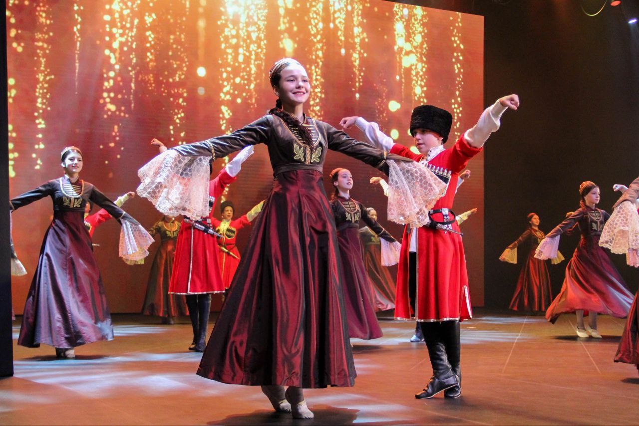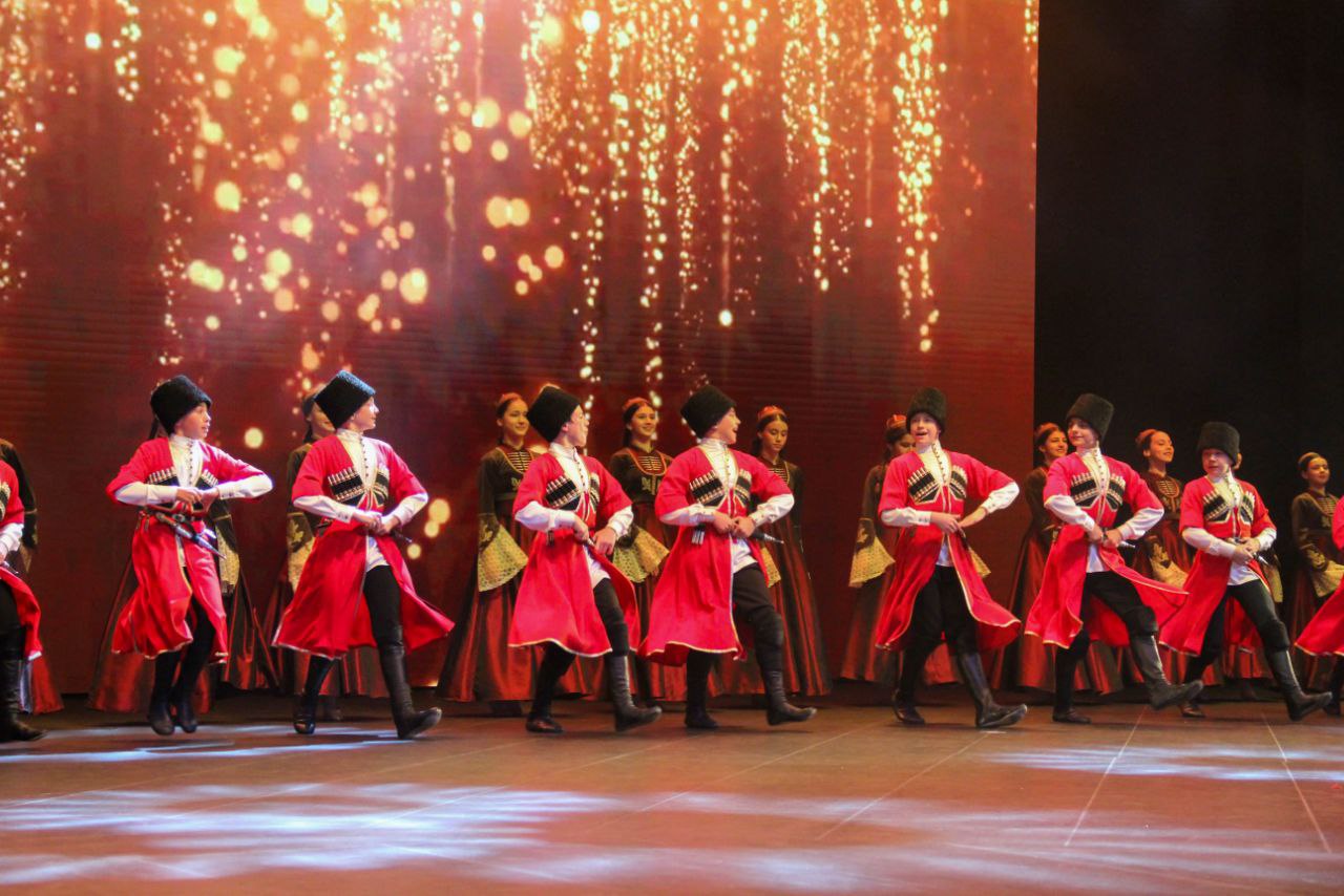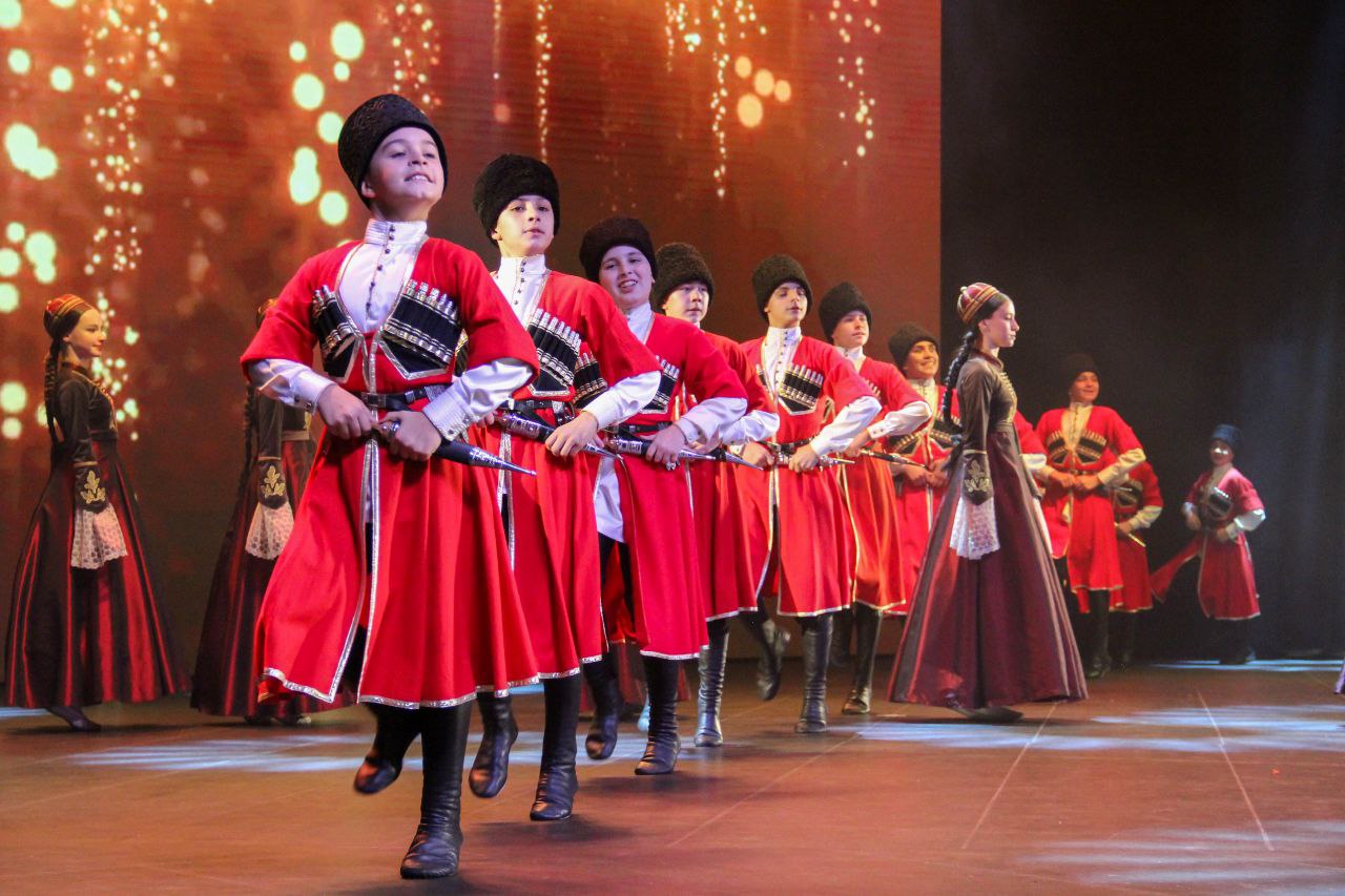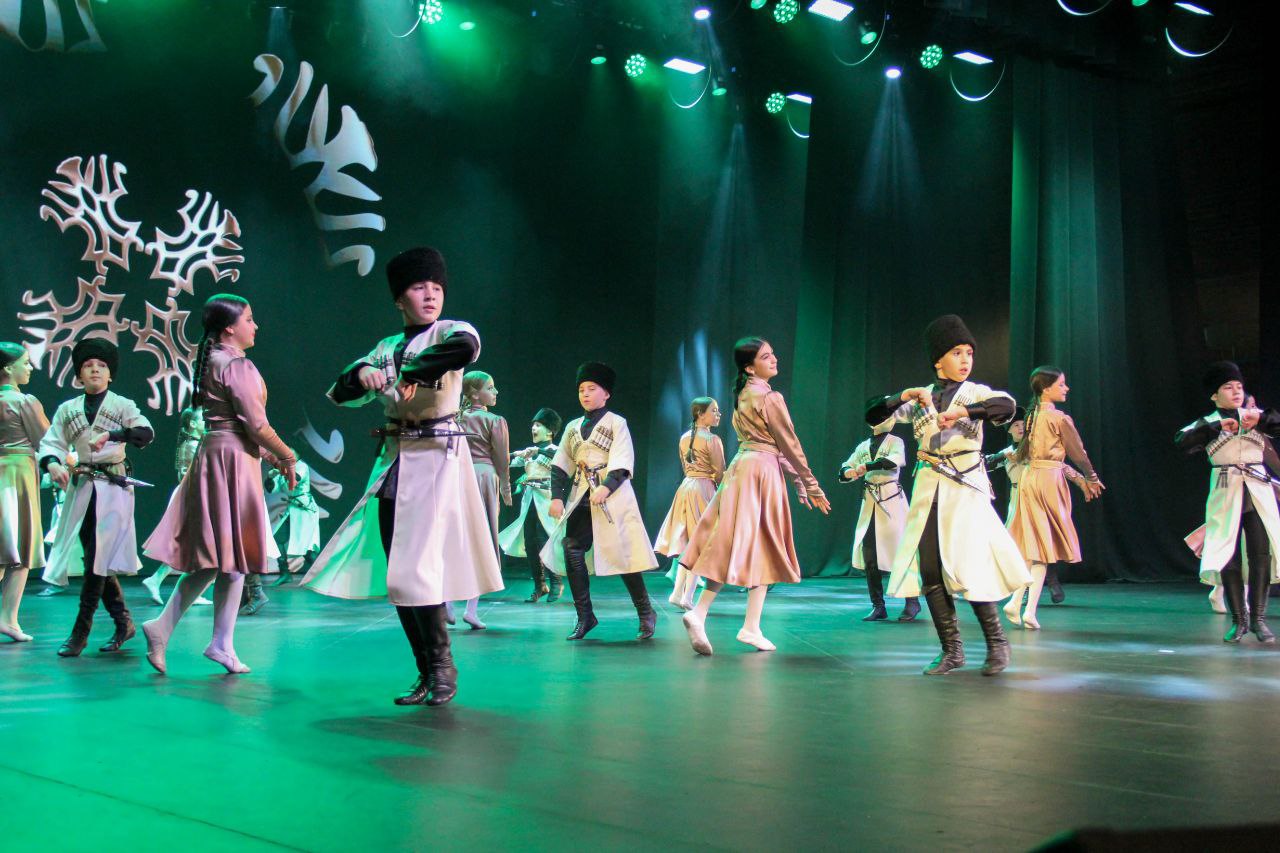 В концертном зале «Нальмэс» состоялся юбилейный концерт заслуженного коллектива народного творчества РФ, образцового детского ансамбля адыгского танца «Зори Майкопа».