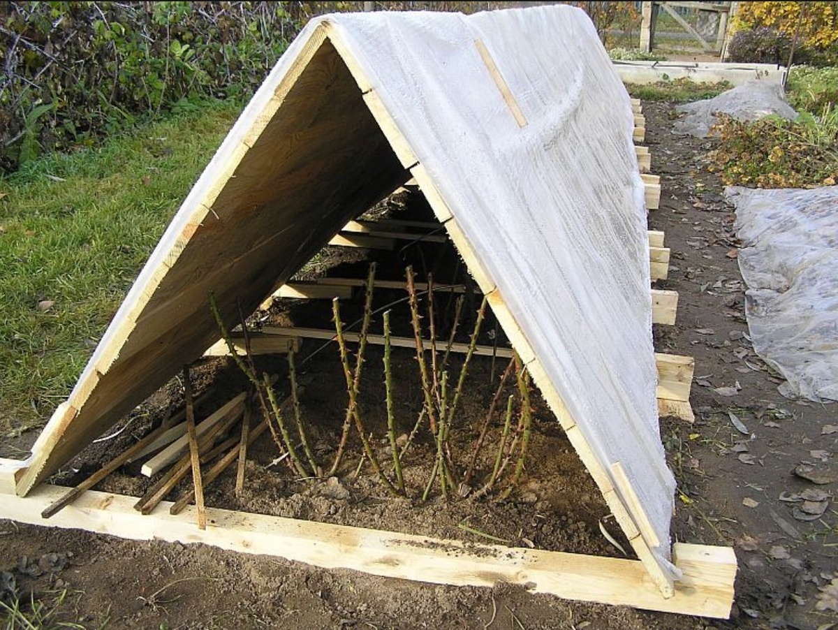 - Для укрытия подойдет каркас, на который натягивается непромокаемый материал, а сверху можно добавить утеплитель, такой как еловый лапник.