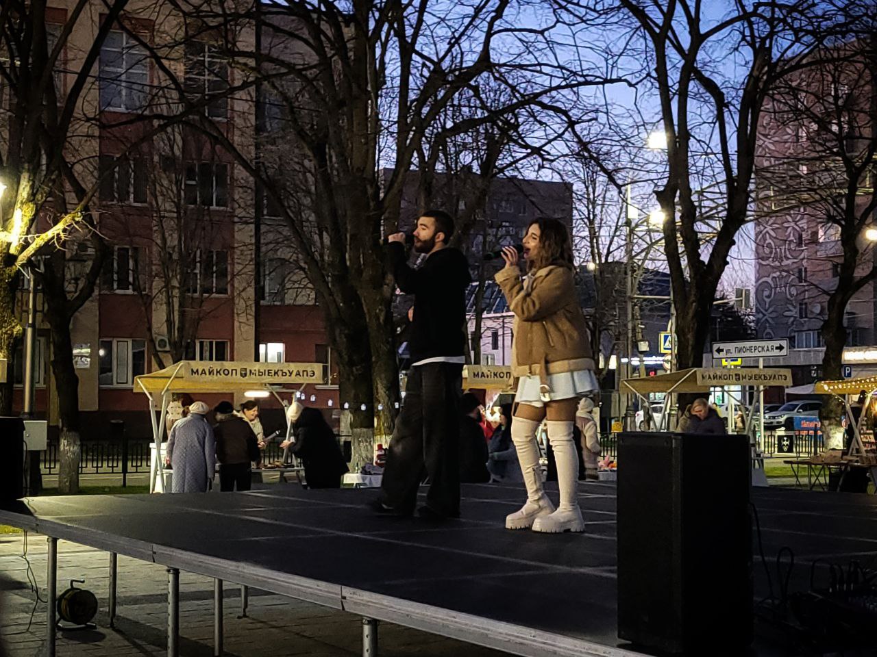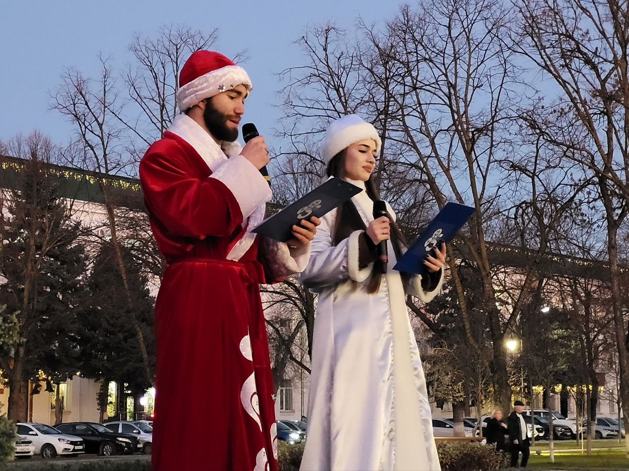 На площади Ленина для жителей и гостей Майкопа выступили талантливые студенты Адыгейского государственного университета. Молодёжь исполнила новогодние песни и представила зажигательные танцевальные номера.