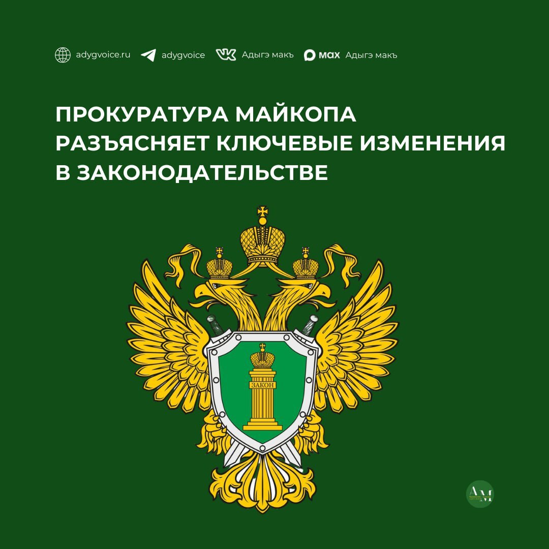 Прокуратура Майкопа информирует о значимых нововведениях в российском законодательстве, направленных на укрепление правопорядка, защиту прав граждан и поддержку населения.