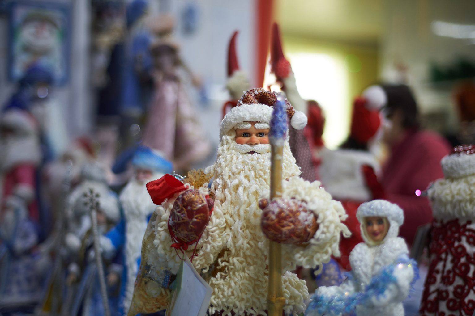 Главный персонаж Нового года — Дед Мороз. На выставке их 25, и все они (а не только их бороды) сделаны из ваты.