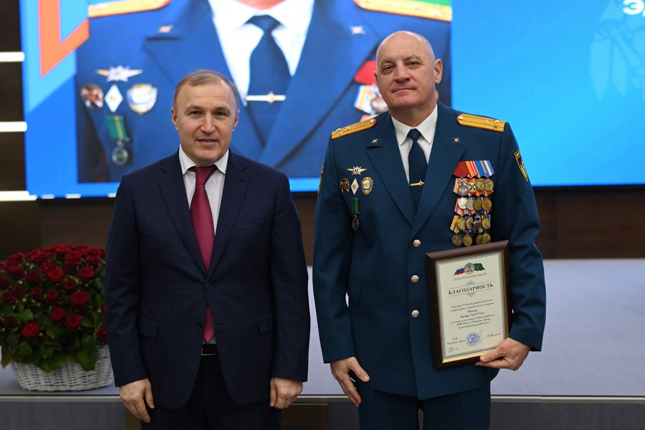 Глава республики выразил уверенность в том, что сотрудники ведомства и впредь будут надежной опорой для региона, продолжат внедрять новые спасательные технологии, участвовать в организации защитных убежищ, сотрудничать с волонтерами и вести профилактическую работу среди населения.