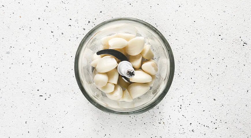 Для начала нужно очистить чеснок от шелухи и мелко его нарезать. Наиболее эффективно это сделать с помощью блендера, особенно если вам нужно большое количество чеснока. Альтернативные методы — использование чесночного пресса или натерка — также подойдут, но потребуют больше времени и усилий.