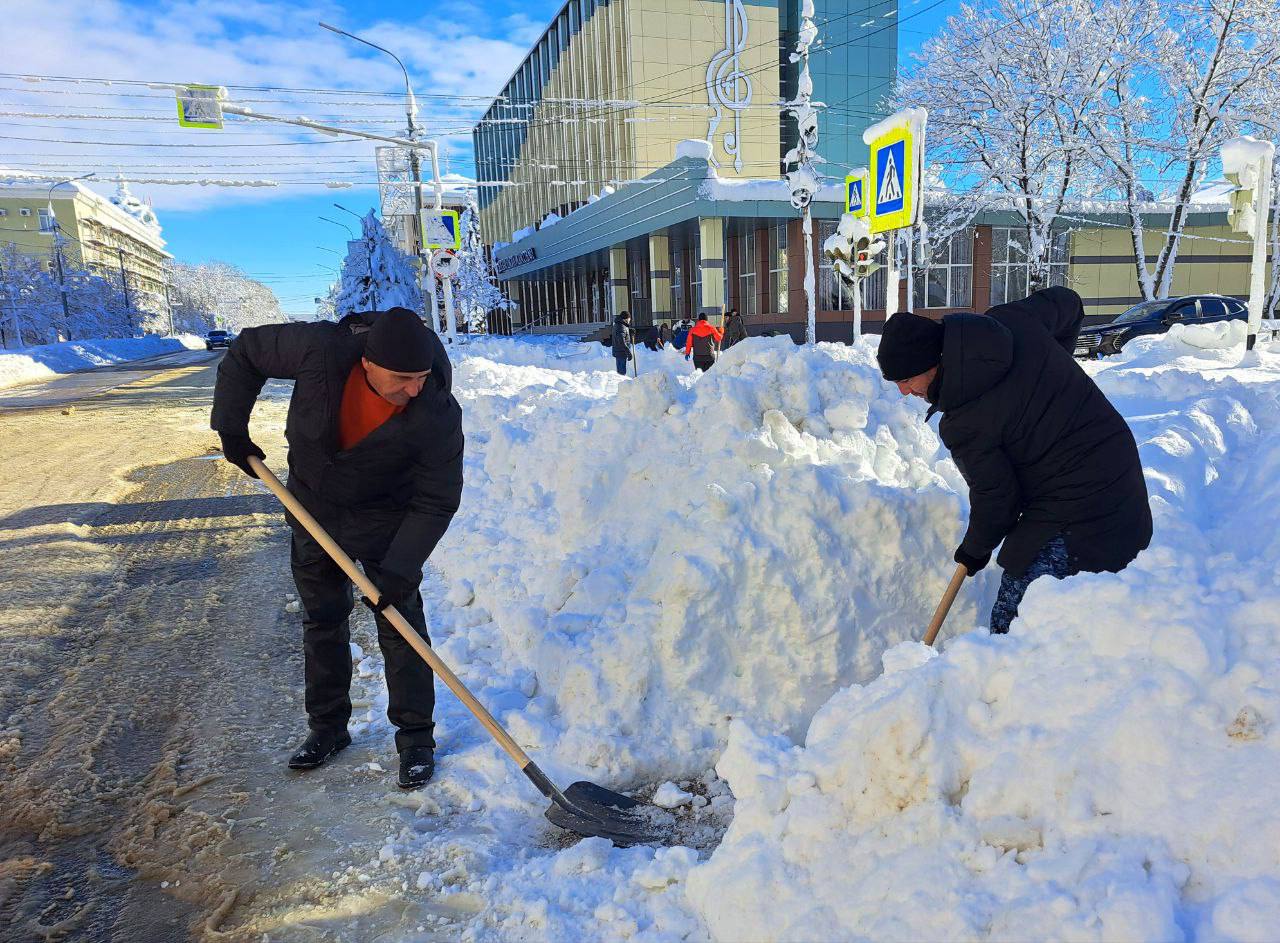 Прямо сейчас в центре Майкопа работает бригада из Адыгейска под руководством главы города Азамата Шамсудиновича Хачмамука. В Черемушках трудится делегация из Тахтамукайского района вместе с главой Аскером Саввом. С уборкой снега помогают и жители Теучежского района, также прибывшие с руководителем муниципалитета Адамом Удычаком.