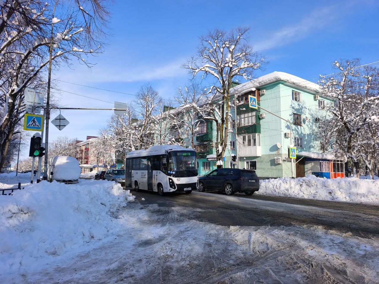 Кадры журналистов «СА» с улиц Майкопа, где идёт ликвидация последствий снегопада