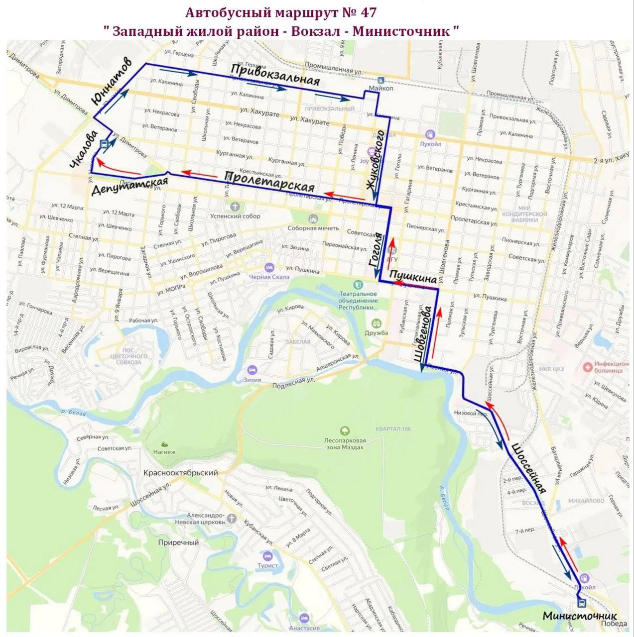 Новый маршрут связывает центр города с микрорайоном Министочник и соцобъектами в западной части Майкопа и заменяет тем самым троллейбусный маршрут № 7.