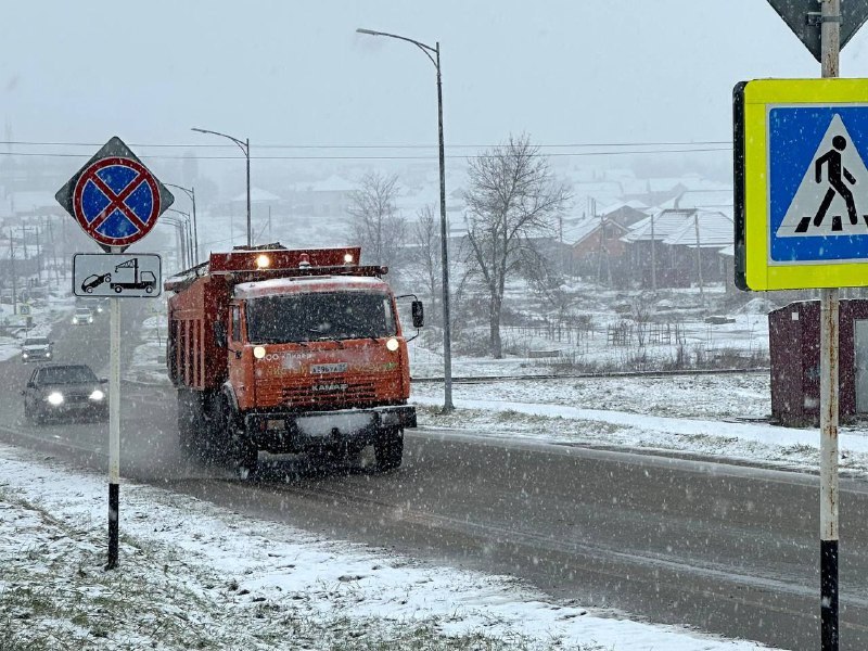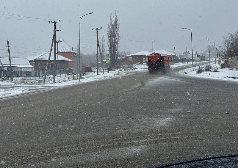 В связи со снегопадом улично-дорожную сеть обрабатывают противогололедными материалами.