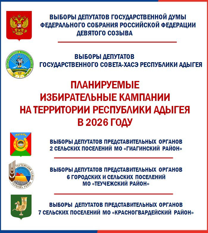 В 2026 году в Адыгее планируется семнадцать избирательных кампаний.