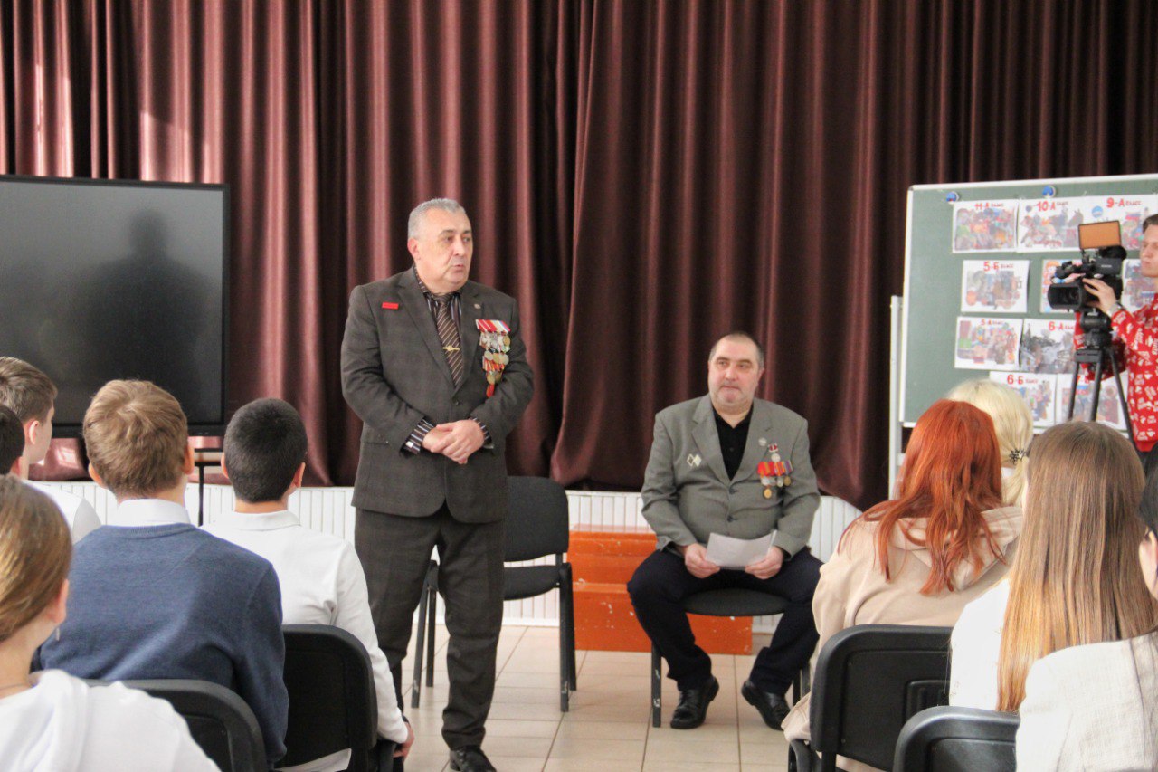 В столице Адыгеи на базе школы № 9 состоялась встреча учащихся с ветеранами боевых действий Юрием Виятиком и Юрием Чмиревым.