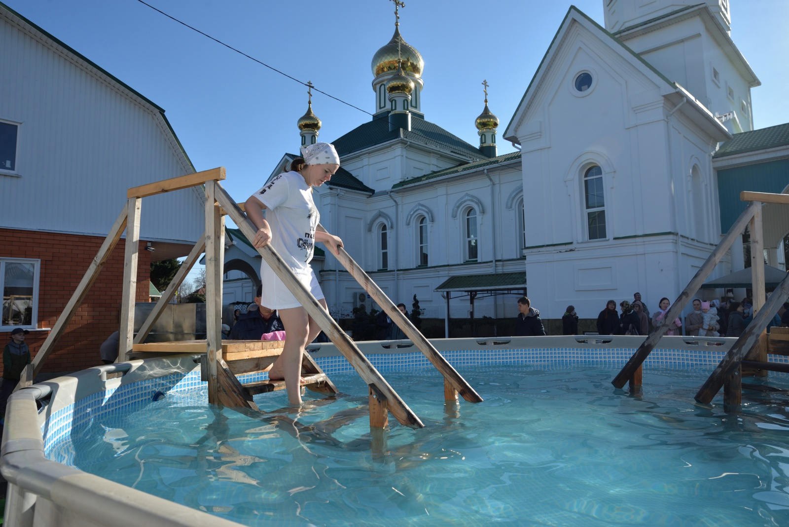 - в Александро-Невском храме поселка Краснооктябрьского (открытый бассейн ООО «Турист»).