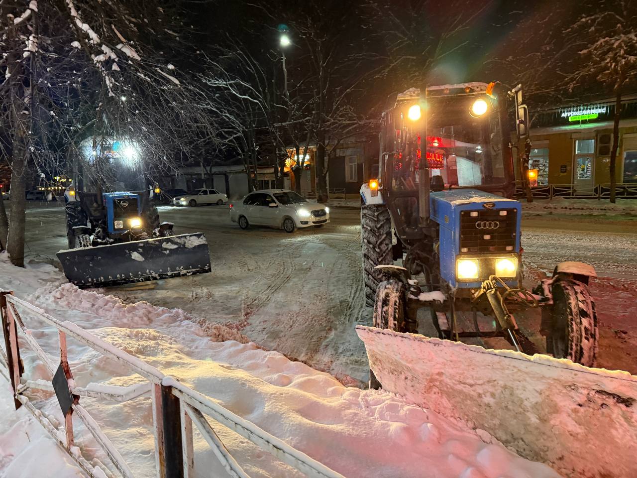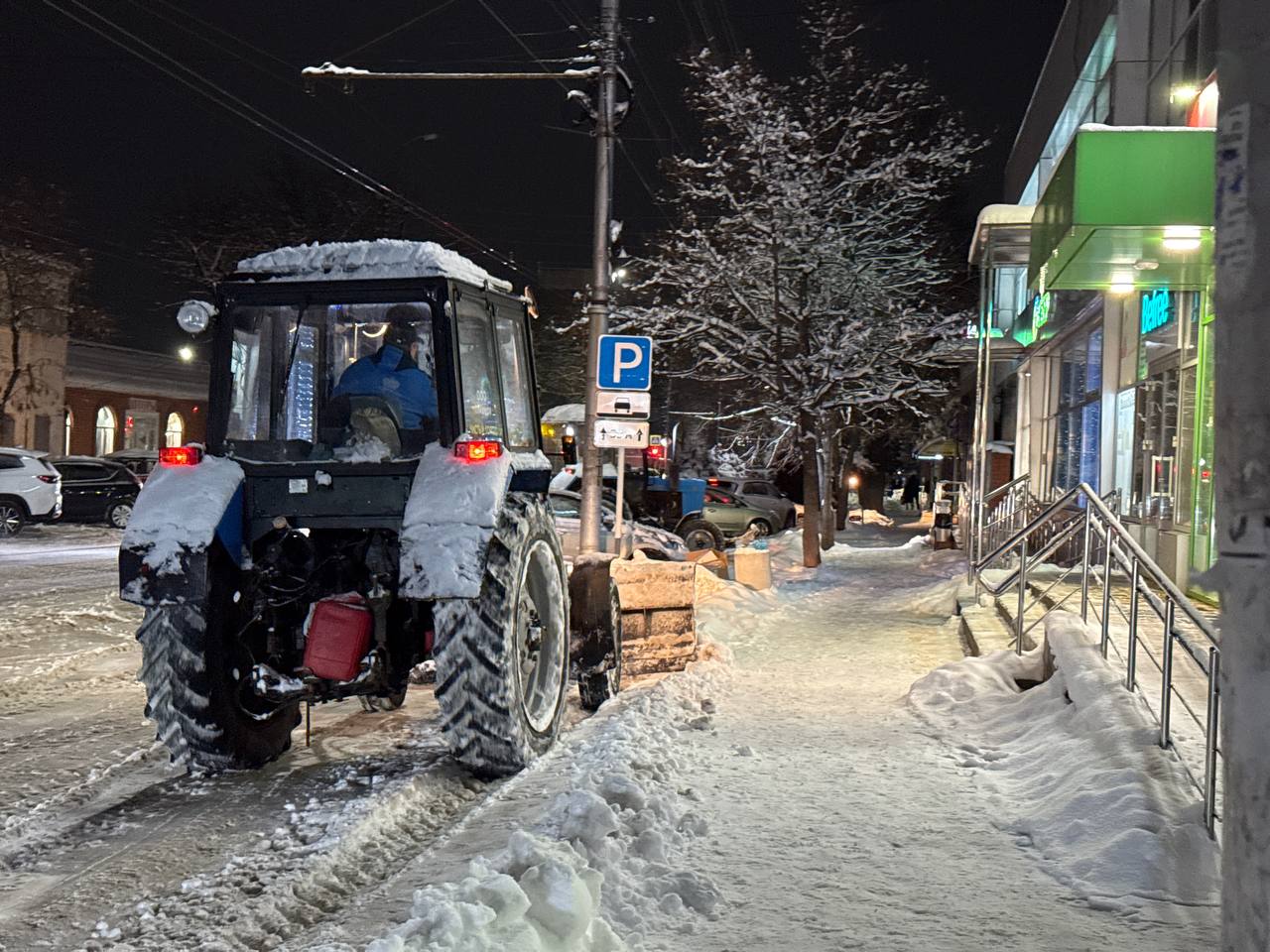 Вечером в Майкопе продолжается уборка: чистят парковки и остановки