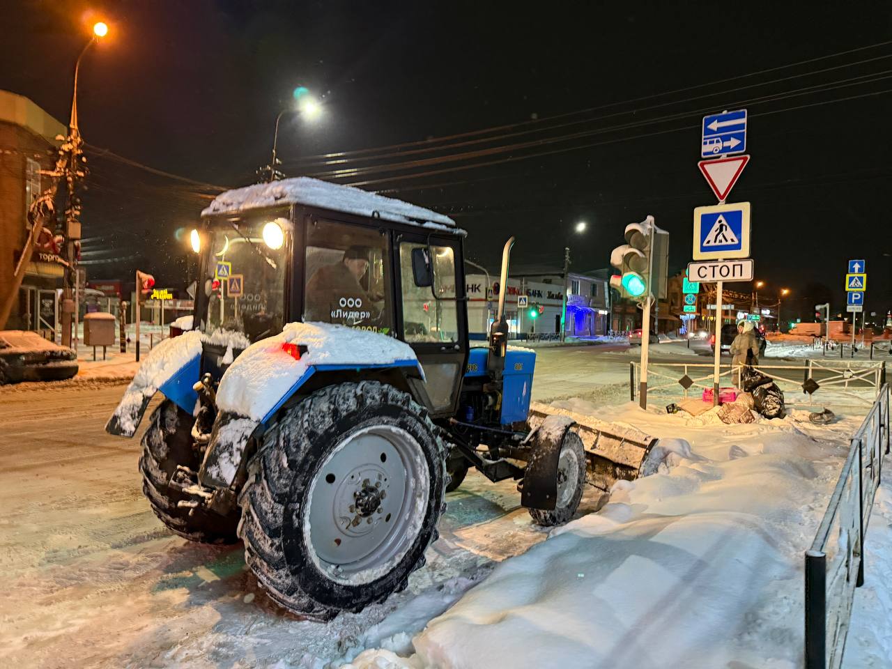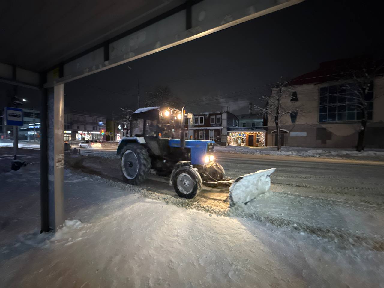 После обработки дорог реагентами техника усиленно работает по расширению проезжей части, расчистке парковочных зон и остановочных павильонов.