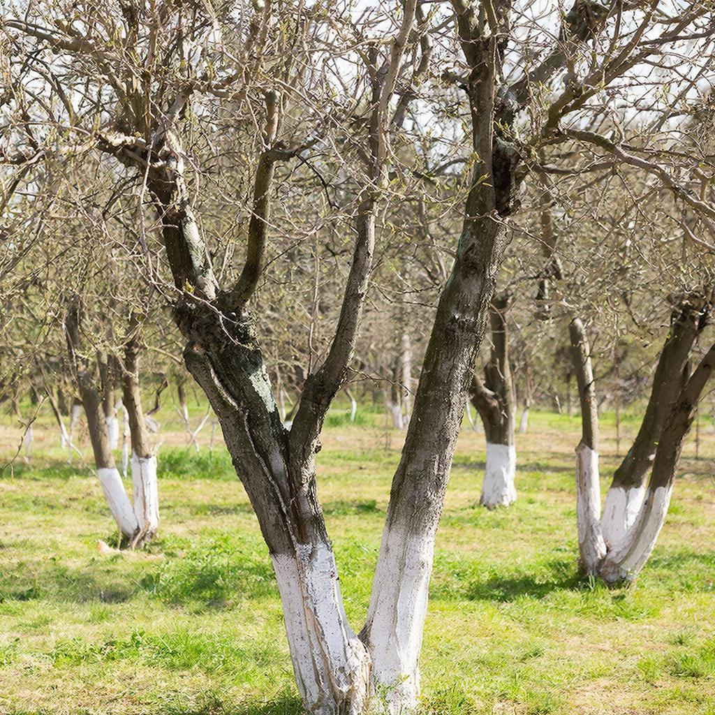 Оптимальные сроки для побелки наступают в конце октября — ноябре, когда листва опадает, а дожди заканчиваются. Температура должна быть в пределах +2…+5 °C, а погода — сухой. Важно не спешить и не проводить побелку слишком рано, чтобы защитный состав не смыло дождем.
