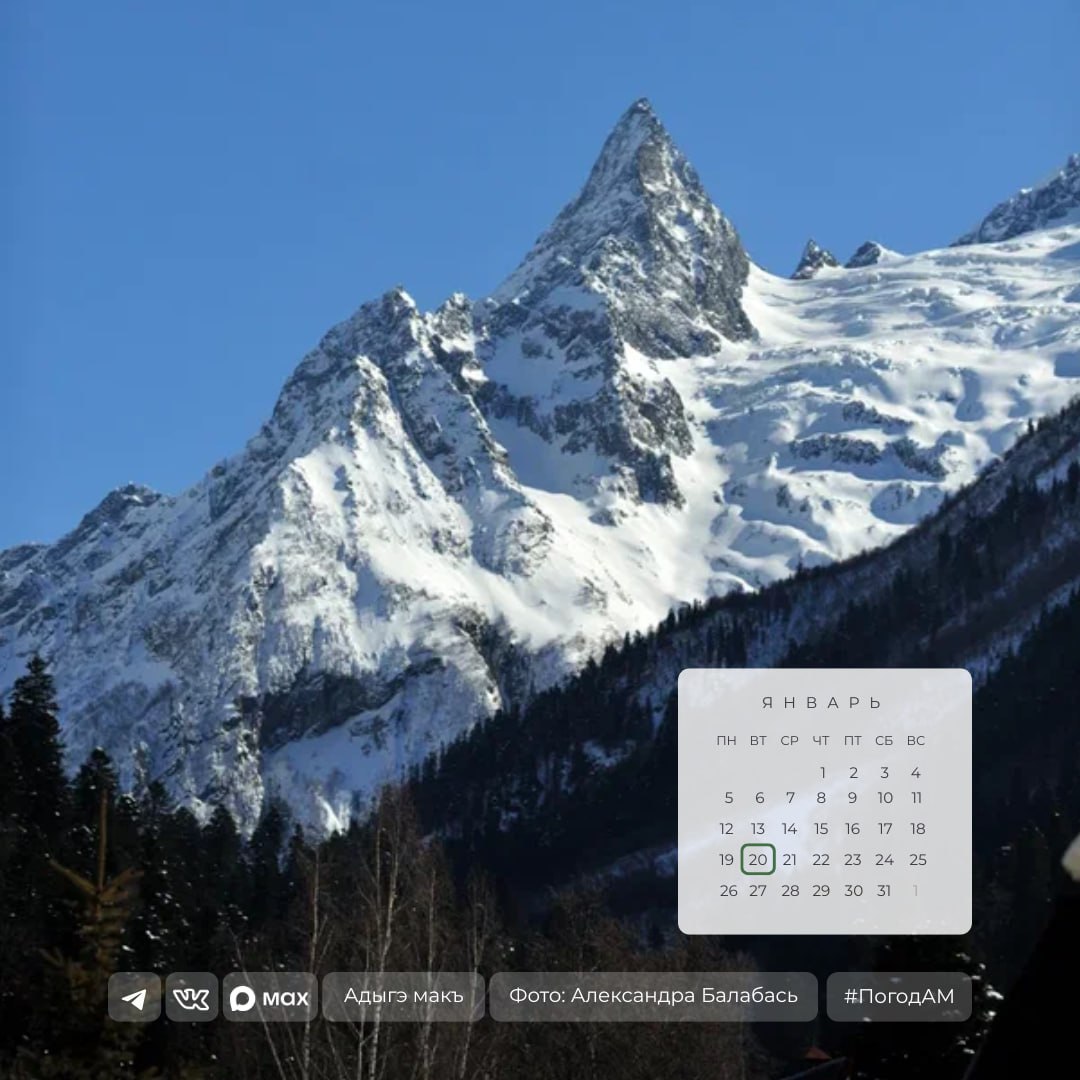 20 января в Адыгее переменная облачность, без осадков.