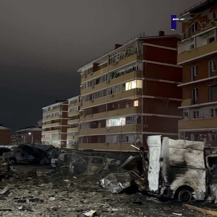 Последствия атаки БПЛА на многоквартирный дом в Адыгее. Пострадали 11 человек, в том числе двое детей.