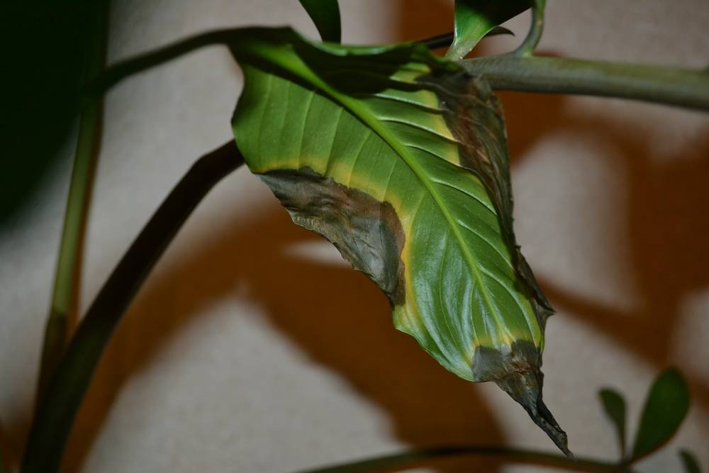 Наиболее частой причиной реальных ожогов является избыток элементов, таких как азот. Обычно это проявляется в виде черных краев на молодых листьях. Если не решить проблему и не сменить почву, новые листья могут вырасти деформированными или не появиться вовсе.