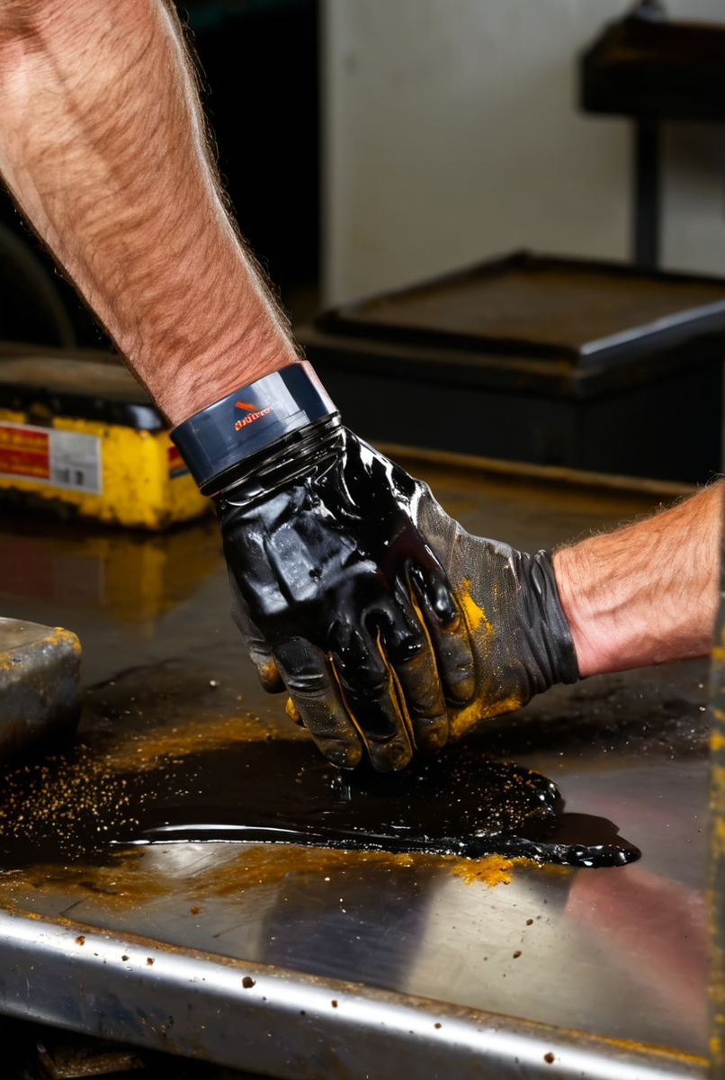 - Средства с абразивом. Эти пасты содержат скраб, который механически удаляет въевшуюся грязь. Они отлично подходят для удаления старого мазута и битума, действуя как щетка для кожи.
