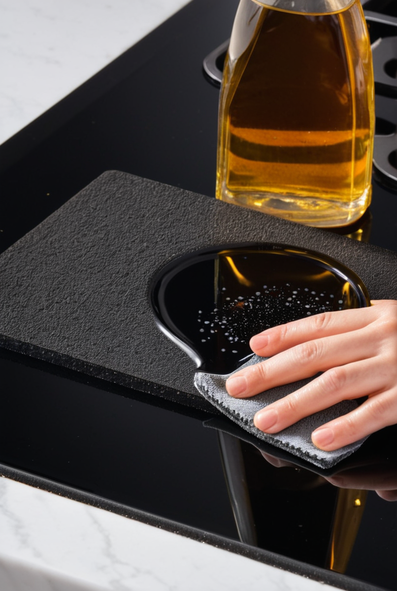 Начало чистки — образование минимальной паузы: нанесите средство на тёплую, но остывшую поверхность и дождитесь 5–10 минут. Удаляйте жир неагрессивной губкой, а для застарелого жира используйте скребок под небольшим углом. Финал — сухая микрофибра, чтобы блеск держался и разводы не вернулись.