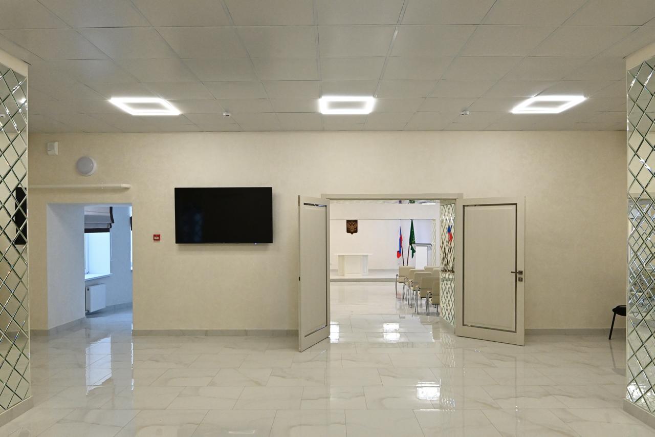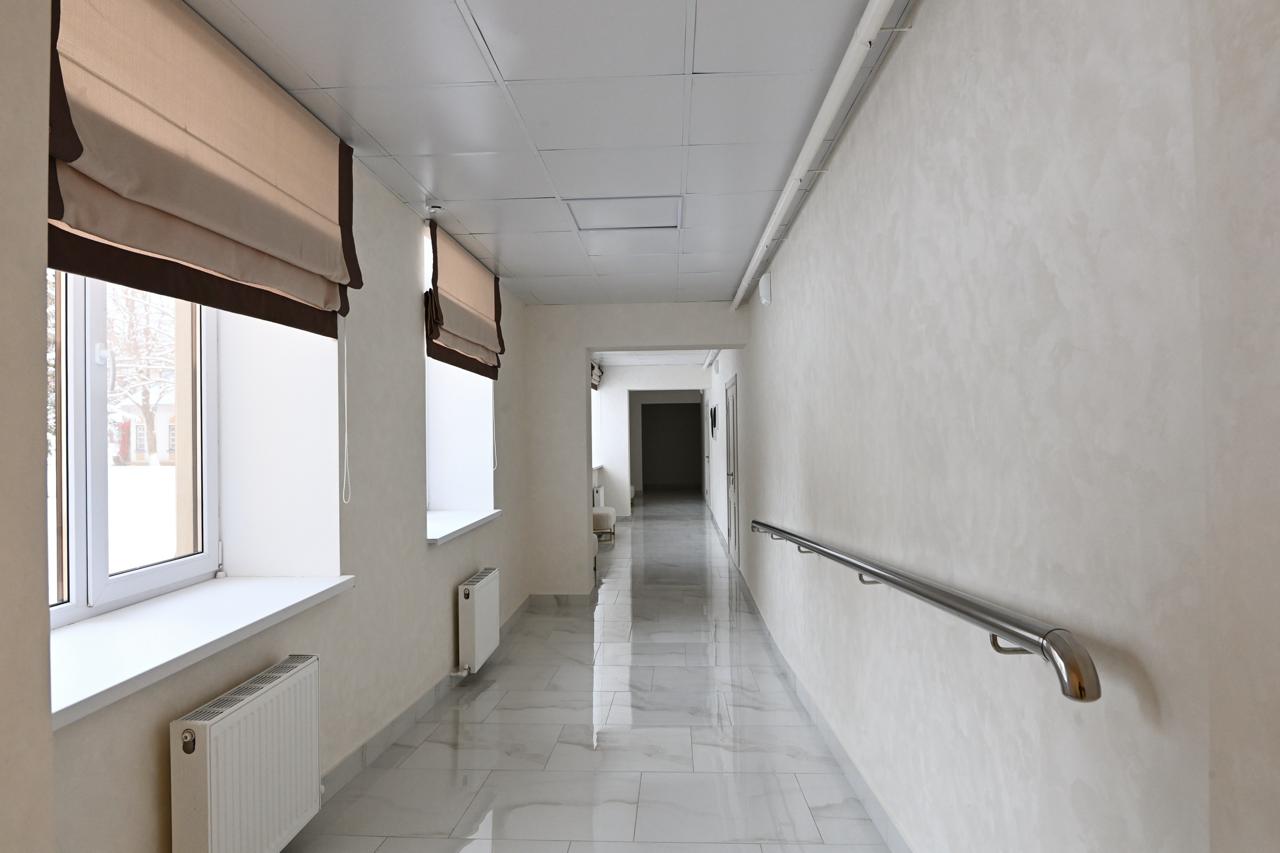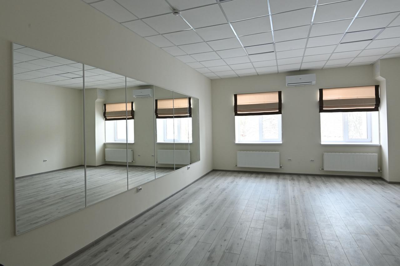 Здание площадью более 900 кв. метров. Выполнены работы как по фасадной части, так и внутри помещений, установлена подсветка и заменена кровля. Здесь полностью обновлены внутренние помещения, заменены инженерные сети, системы отопления, электроснабжения и освещения; закуплена мебель и оборудование. Благоустроена также прилегающая территория.