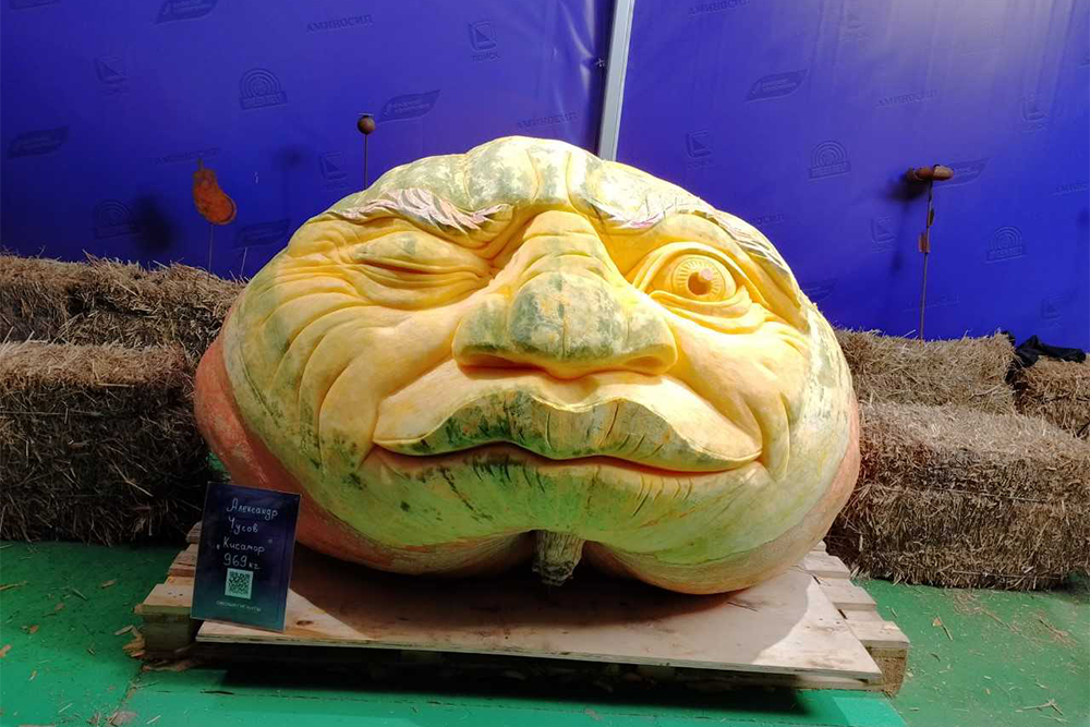 За время проведения выставки тыквы не только привлекли внимание своим размером, но и преобразились в настоящие произведения искусства. Чемпион мира по скульптуре Сергей Кныш, известный своими работами с ледяными и песчаными композициями по всему миру, вдохнул жизнь в эти оранжевые плоды. Он создал уникальные лица для каждой тыквы, добавив им веселый характер и харизму. Посетители выставки в минувшую пятницу стали свидетелями его творческих усилий, за которыми с интересом наблюдал рекордсмен овощеводства Александр Чусов.