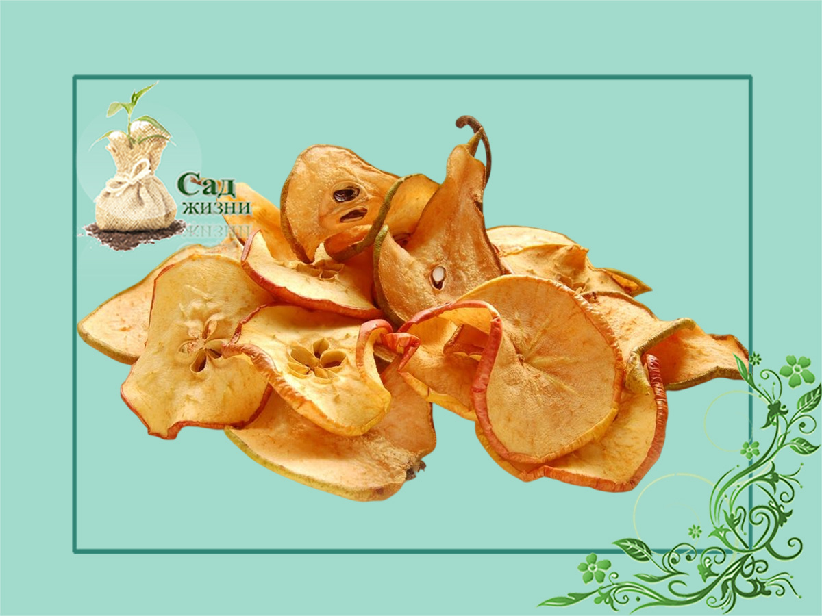 Для сушки яблок и груш плоды необходимо перебрать, промыть холодной водой и обсушить. Удаляют сердцевину, нарезают дольками и на 2-3 минуты помещают в подсоленный раствор либо раствор лимонной кислоты — это поможет сохранить белый цвет фруктов. После этого их сушат в духовке при температуре 70-80 °C до полной готовности. Хранить лучше в закрытых контейнерах или мешочках.