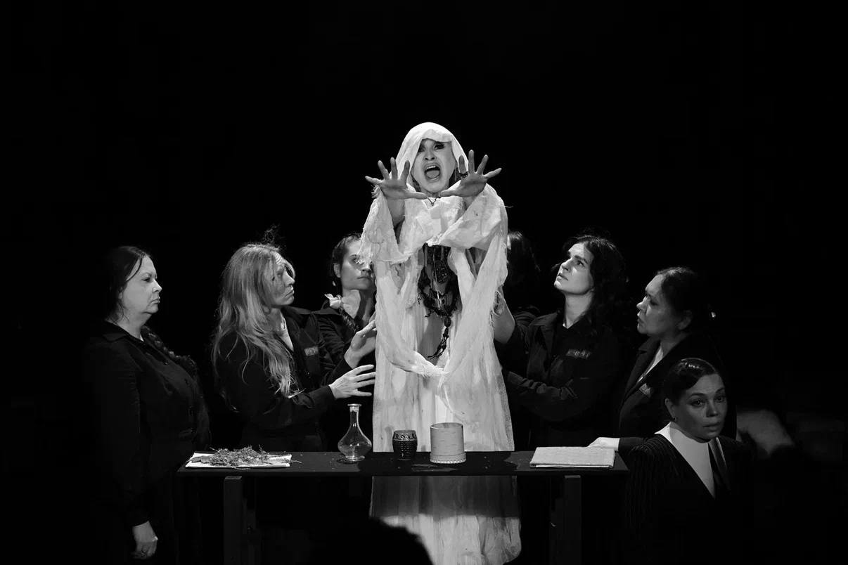 В спектакле зрители выступают участниками действия и принимают решение, кто из героинь заслужил наказание, а кто прощение.