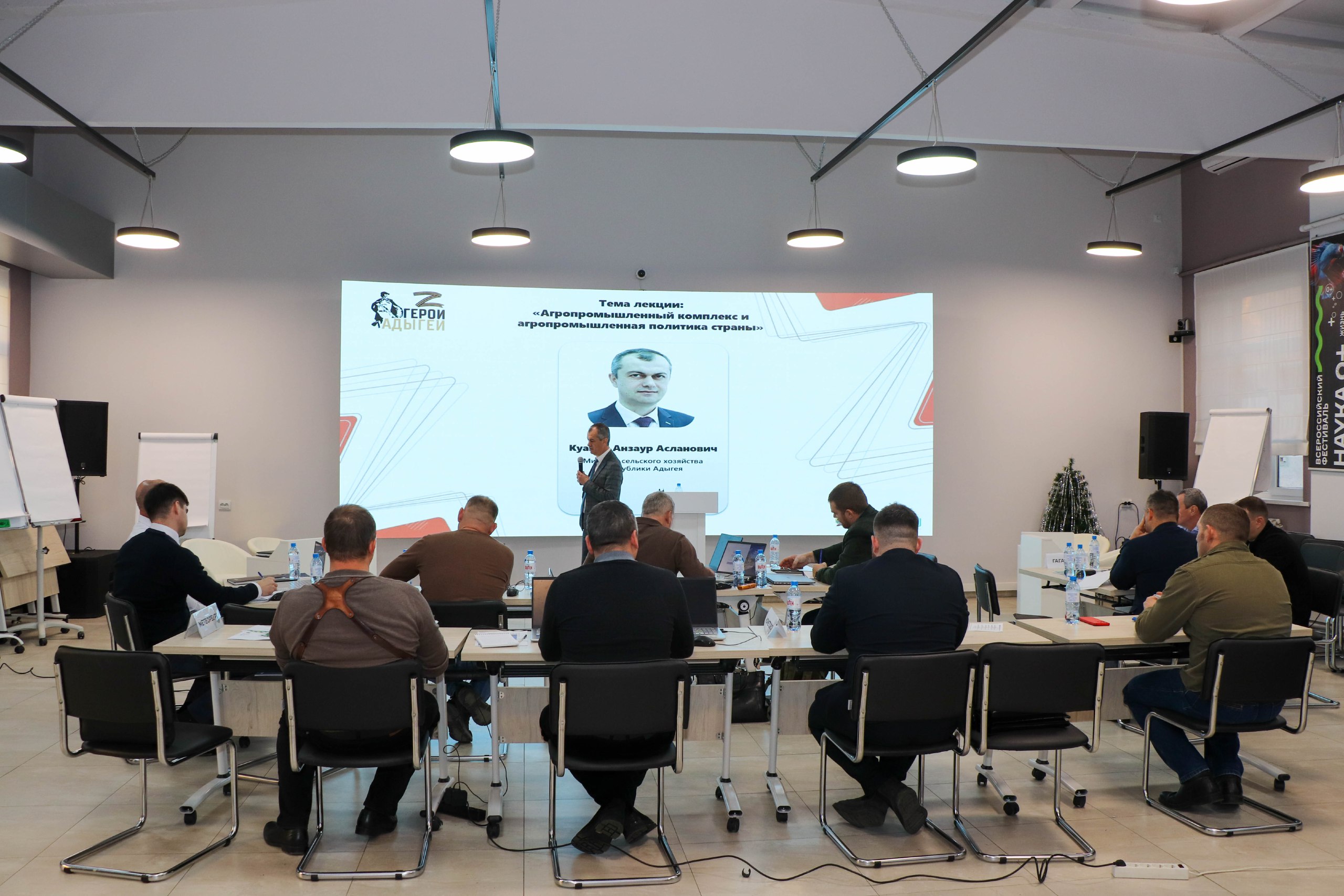 Во время второго модуля обучения для «Героев Адыгеи» прошла лекция на тему «Агропромышленный комплекс и агропромышленная политика страны». Министр сельского хозяйства Адыгеи Анзаур Куанов рассказал о ключевых аспектах АПК, его вкладе в экономику региона и задачах устойчивого развития