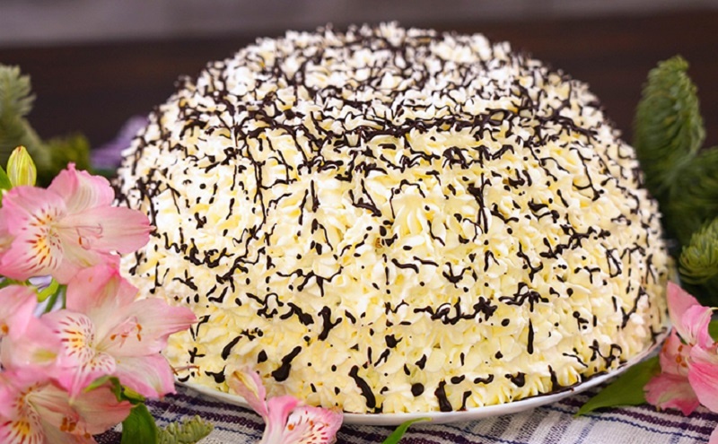 Перед подачей подготовьте украшение, смешав сметану с сахарной пудрой. Обмажьте торт ароматной массой и сверху украсьте растопленным шоколадом. Это даст вашему десерту нотку живописности и сделает его еще более привлекательным.