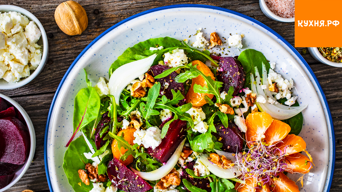 Если вы по-прежнему считаете, что свекла предназначена лишь для «сельди под шубой», этот салат изменит ваше мнение. Его ключевое достоинство – простота и отсутствие майонеза. Идеальное сочетание свеклы, козьего сыра, мандаринов и грецких орехов точно попадет в точку, вызывая настоящий взрыв вкусовых ощущений.
