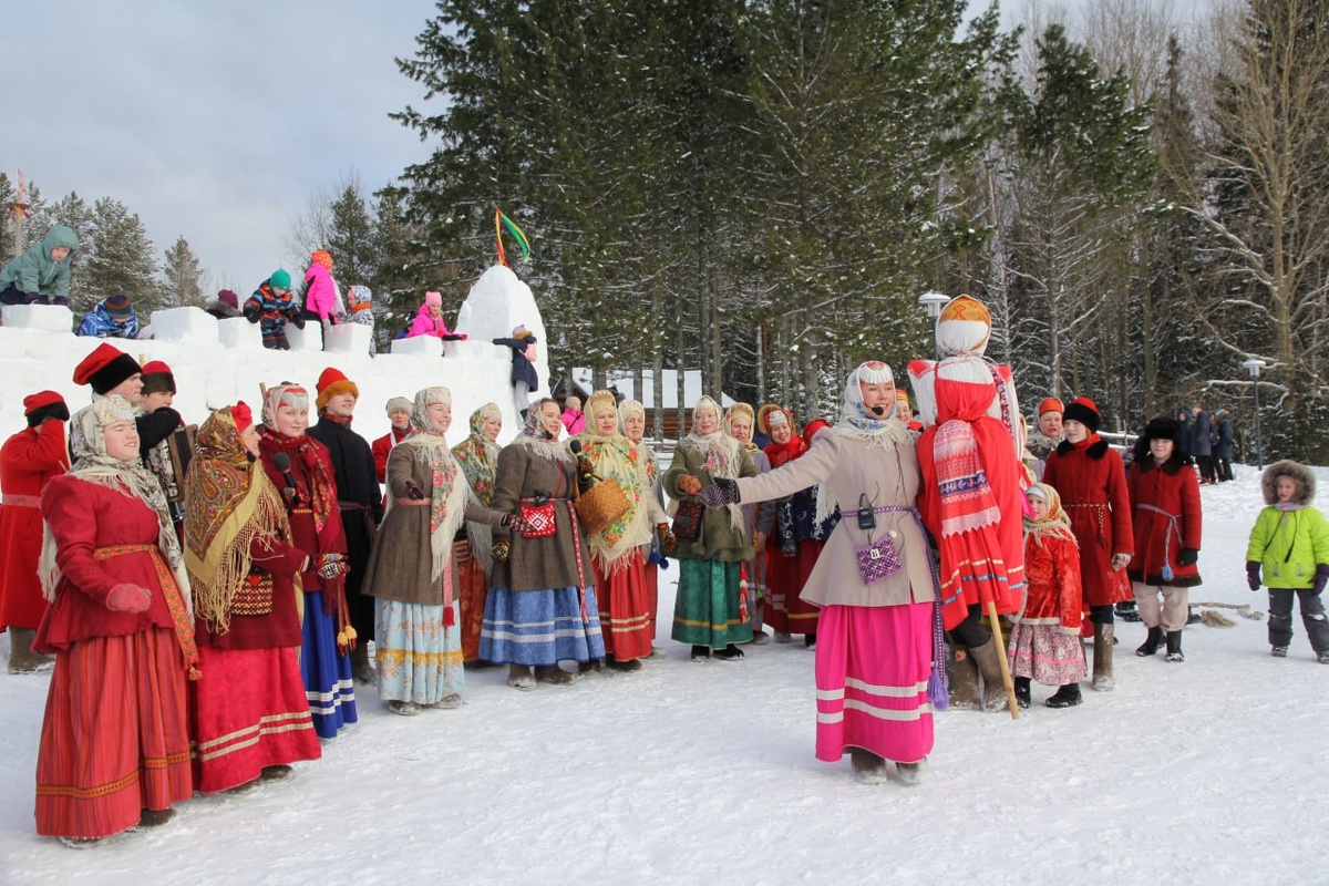 - Масленичный поезд: вперёд к веселью! На повозке выступал гармонист, а толпа следовала за ним, исполняя обрядовые песни.