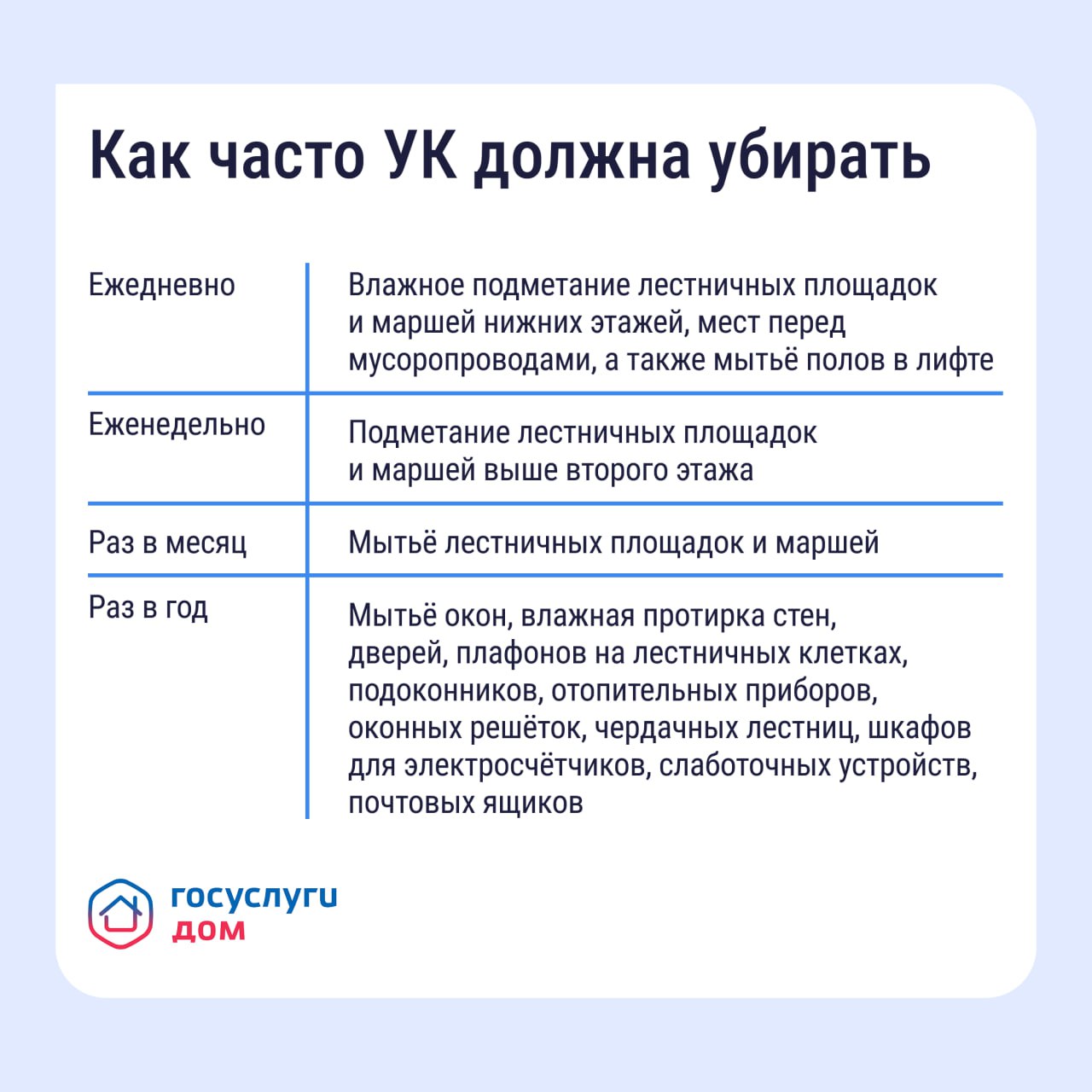 В карточках рассказываем, какие рекомендации по уборке существуют и как повлиять на УО через приложение «Госуслуги Дом».