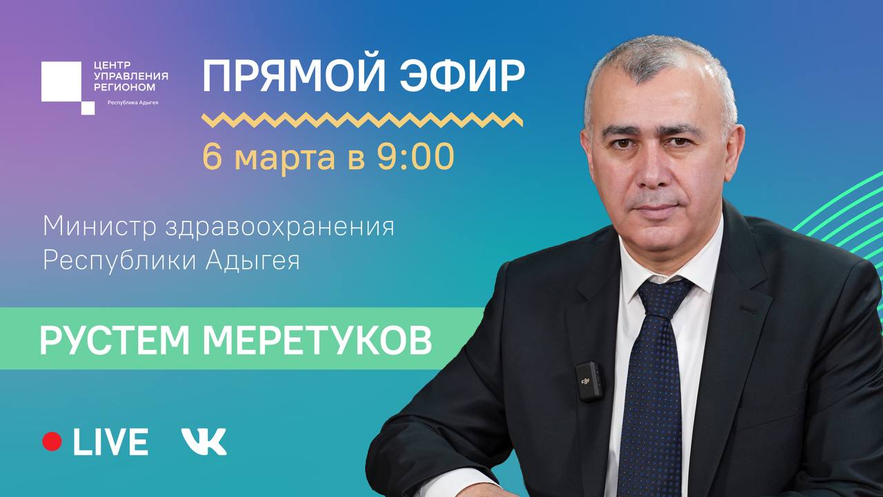 6 марта в 9:00 ЦУР Адыгеи проведет прямой эфир с министром здравоохранения Рустемом Меретуковым.