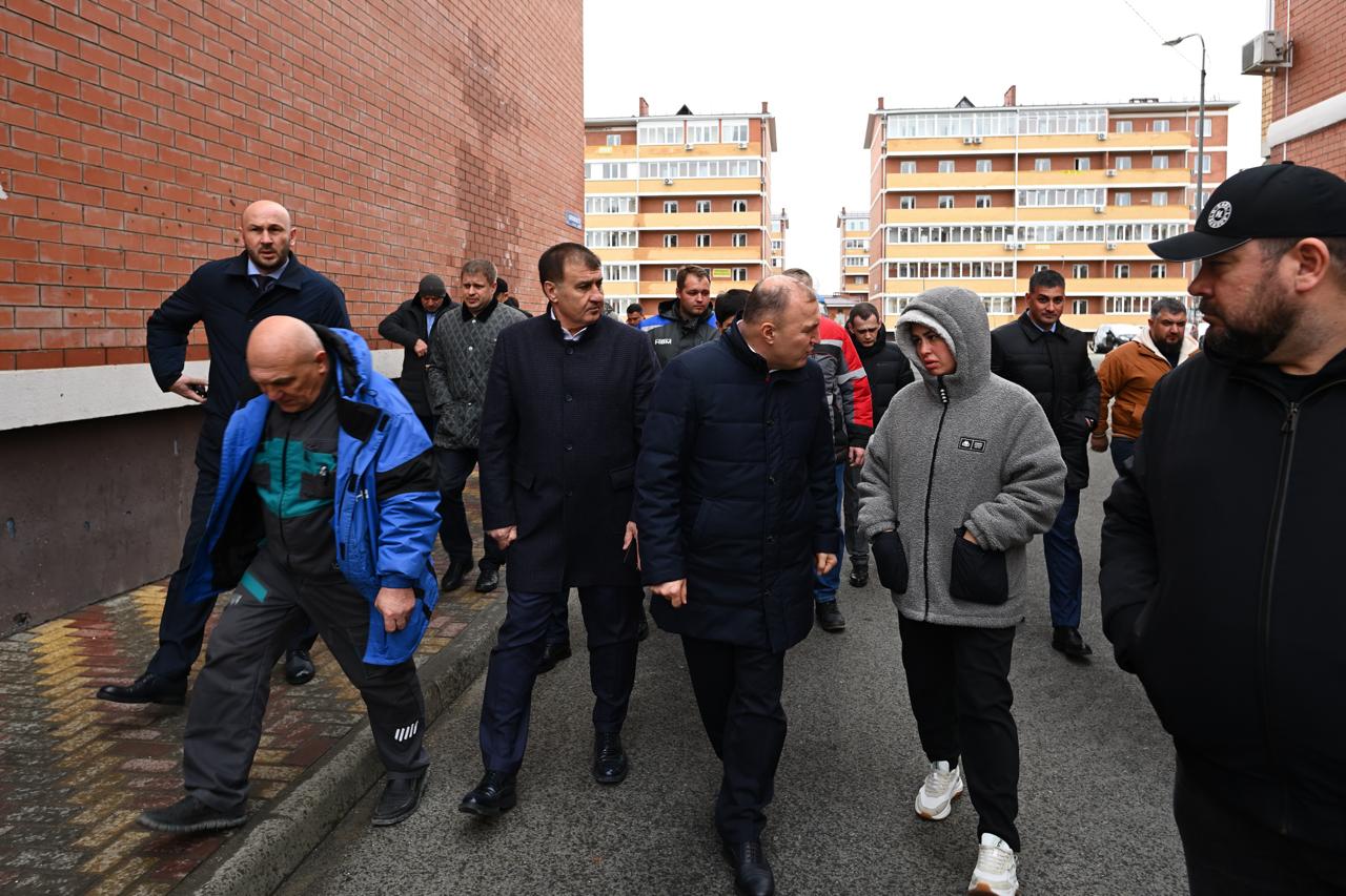 Мурат Кумпилов ознакомился с ходом восстановления поврежденных от атаки домов в Новой Адыгее