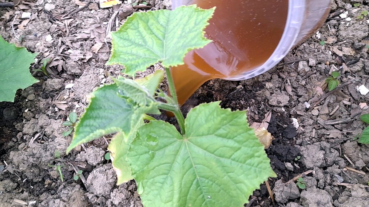 - Поливать по литру раствора на одно растение огурцов.