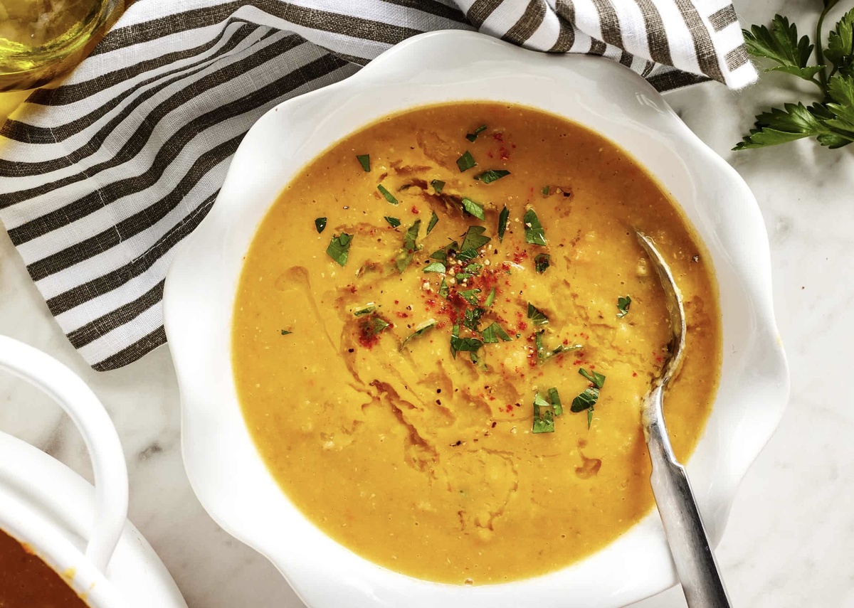 - Суп-пюре из чечевицы с копченой паприкой — насыщенное и ароматное блюдо, которое станет идеальным согревающим обедом для холодного дня. Нежность чечевицы в сочетании с дымным привкусом паприки создаст удивительное гармоничное сочетание.