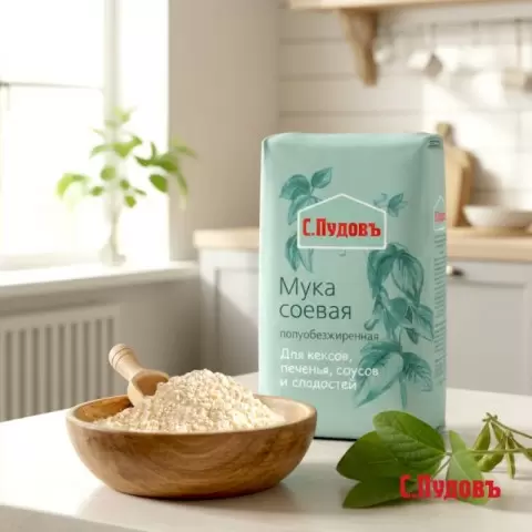 Соевая мука от "С.Пудовъ" обладает насыщенным, слегка ореховым привкусом, который дополнен характерной бобовой ноткой. Она легко объединяется с другими ингредиентами, не «перекрывая» их аромат, а наоборот, добавляя особую изюминку. По сравнению с привычной мукой, соевая имеет более плотную и мелкозернистую структуру. Это качество позволяет ей великолепно впитывать жидкости, создавая однородную массу, что особенно оценят кулинары, стремящиеся достичь идеальной консистенции в выпечке и соусах.