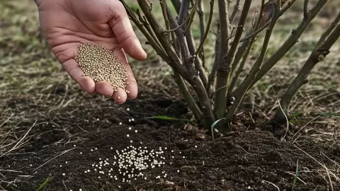 - Зола: Этому природному удобрению известно множество преимуществ. Она насыщена калийными и кальциевыми соединениями, что помогает укрепить растения и повысить их стойкость к зимним холодам. Рекомендуется использовать около 50 граммов золы, распределяя ее по кругу вокруг куста и слегка втирая в почву.