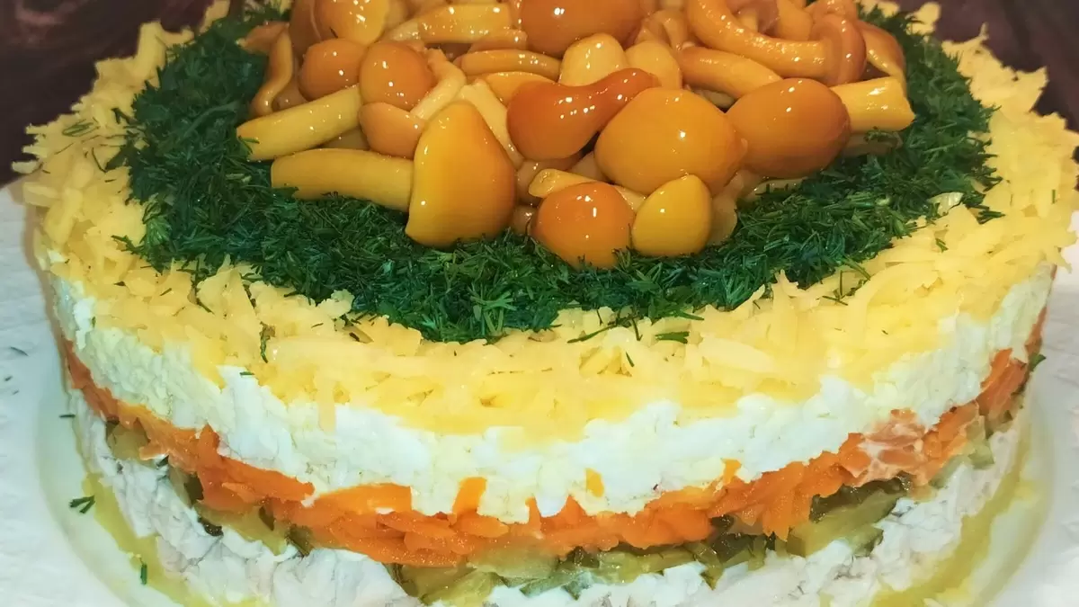Этот слоеный салат предлагает непревзойденное сочетание отварной курицы, маринованных огурцов, грибов опят и картофеля. Все эти компоненты гармонично дополняют друг друга, создавая неповторимый вкус, который не оставит равнодушным никого.