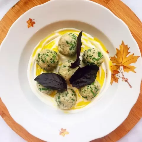 Подавать клёцки можно на подушке из свежего базилика и других трав. Отличным дополнением станут нежирный йогурт, сметана или оливковое масло.