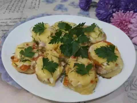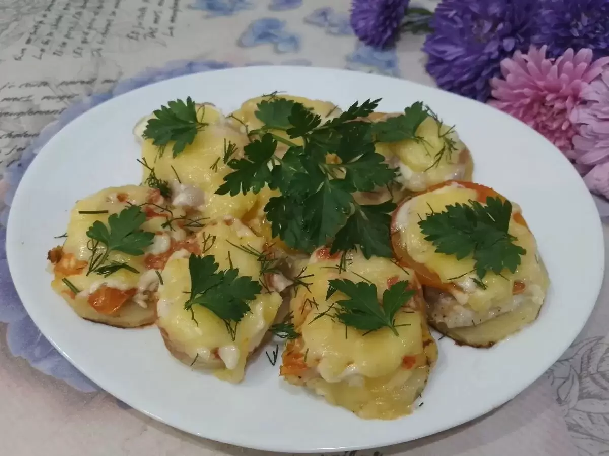 Запеченный картофель с ветчиной, помидорами и сыром – это идеальное сочетание вкуса и сытности. Это блюдо прекрасно подходит как для праздничного стола, так и для обычного обеда. Оно сочетает в себе простоту приготовления и исключительный вкус, который порадует всех.