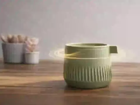 Индийский дизайнер Аанья Джайн разработала оригинальную концепцию кофе-чайной чашки, способной издавать успокаивающие звуки. При снятии с подставки, чашка начинает звучать, а при возвращении — замолкает, продолжая с того места, где остановилась. Пока идея существует только в виде концепта, но уже вызывает много интереса и обсуждений.