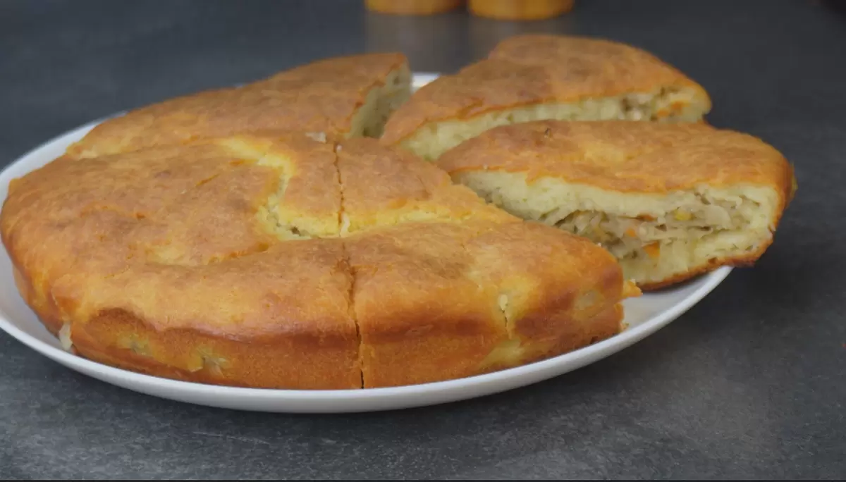 Приготовление начинается с теста на кефире, которое позволяет добиться равномерного пропекания. Для начинки подойдет жареная квашеная капуста, но можно экспериментировать с другими вариантами.