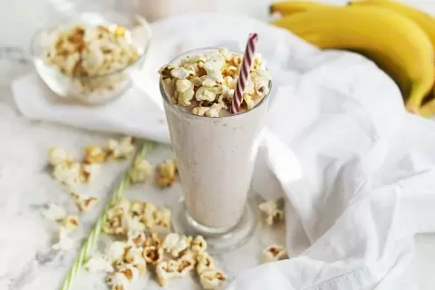 Шаг 2: Разлить получившийся милкшейк по бокалам. Завершите подачу, украсив коктейль карамельным попкорном. Подавать сразу же для максимального удовольствия от вкуса.