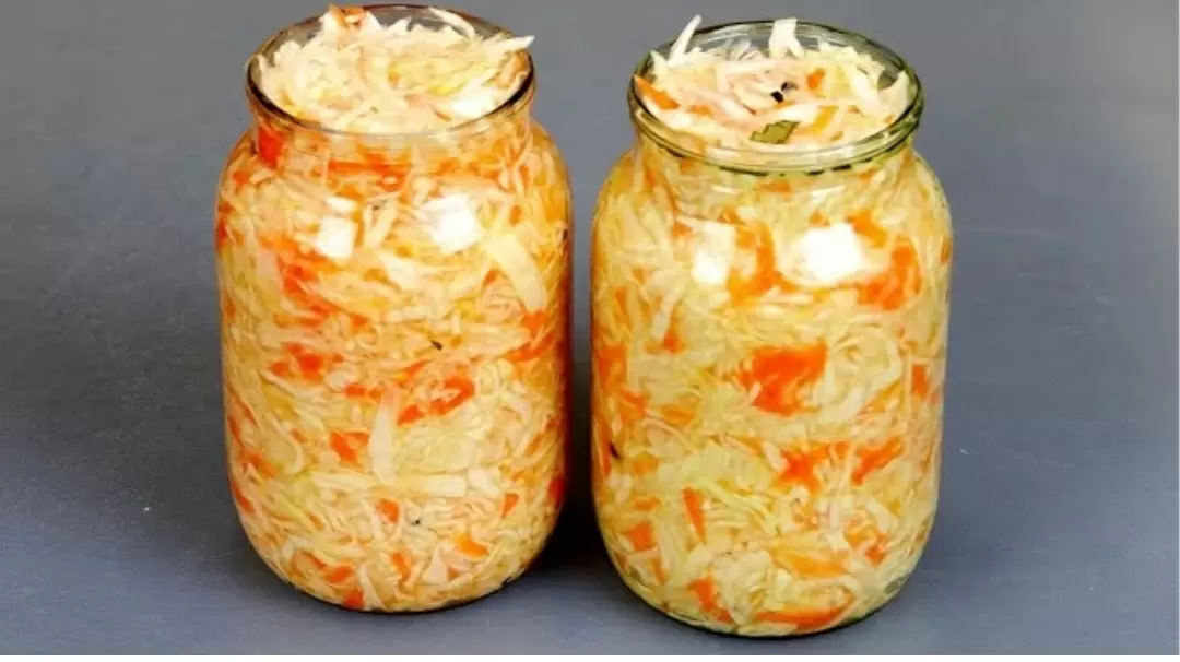В чистую стерильную банку помещают капусту с морковью, заполняя до верха. Затем заливается подготовленный рассол, следя за тем, чтобы жидкость покрыла все овощи. Закрыть банку крышкой и оставить в теплом месте на 1-2 дня для ферментации. Этот процесс придаёт капусте характерный вкус и аромат.